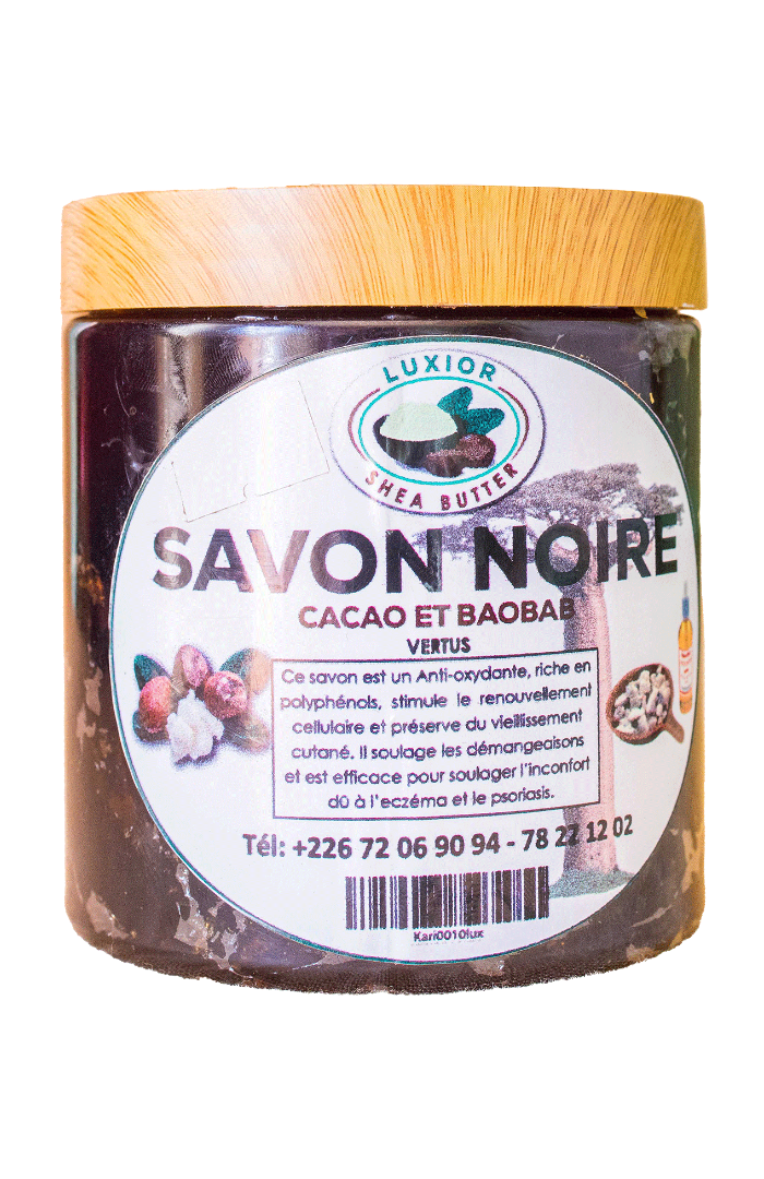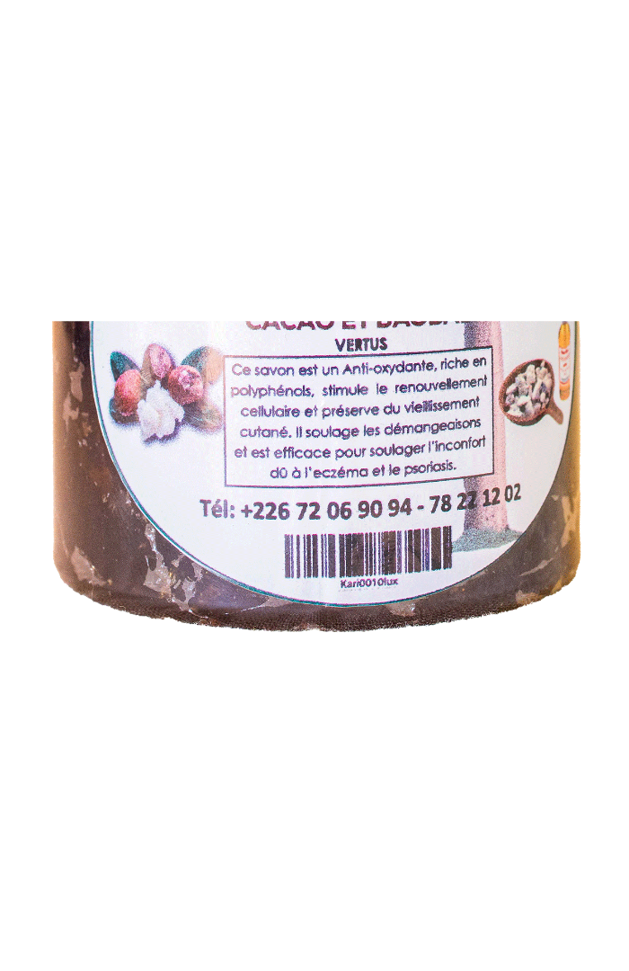 Le Savon Noir au Cacao et Baobab est un soin artisanal unique, formulé à partir d’ingrédients naturels d’Afrique.
